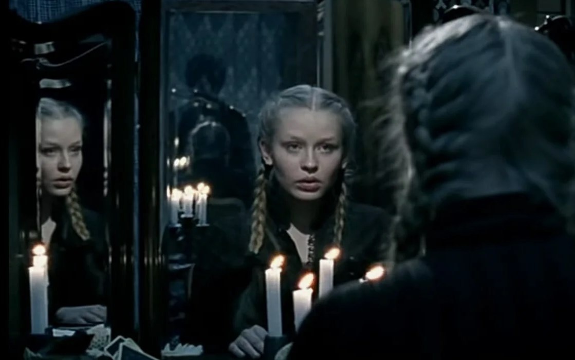 Оба фильма используют один из самых сильных святочных обрядов — гадание перед зеркалом, где отражение становится окном в иные измерения.