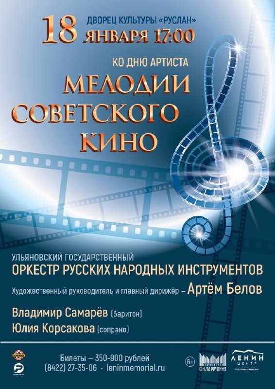 🗓️ 18 января в 17:00 📍ДК «Руслан» Прозвучат песни и музыка из кинофильмов «Любовь и голуби», «Жестокий романс», «Раба любви», «Мимино», «Тарас Бульба», «Идиот». Также в программе современная авторская интерпретация знаменитых музыкальных тем. Подробности и билеты 🎟️ Скидка для вас по промокоду культура 🌸 #18января26@culturnik