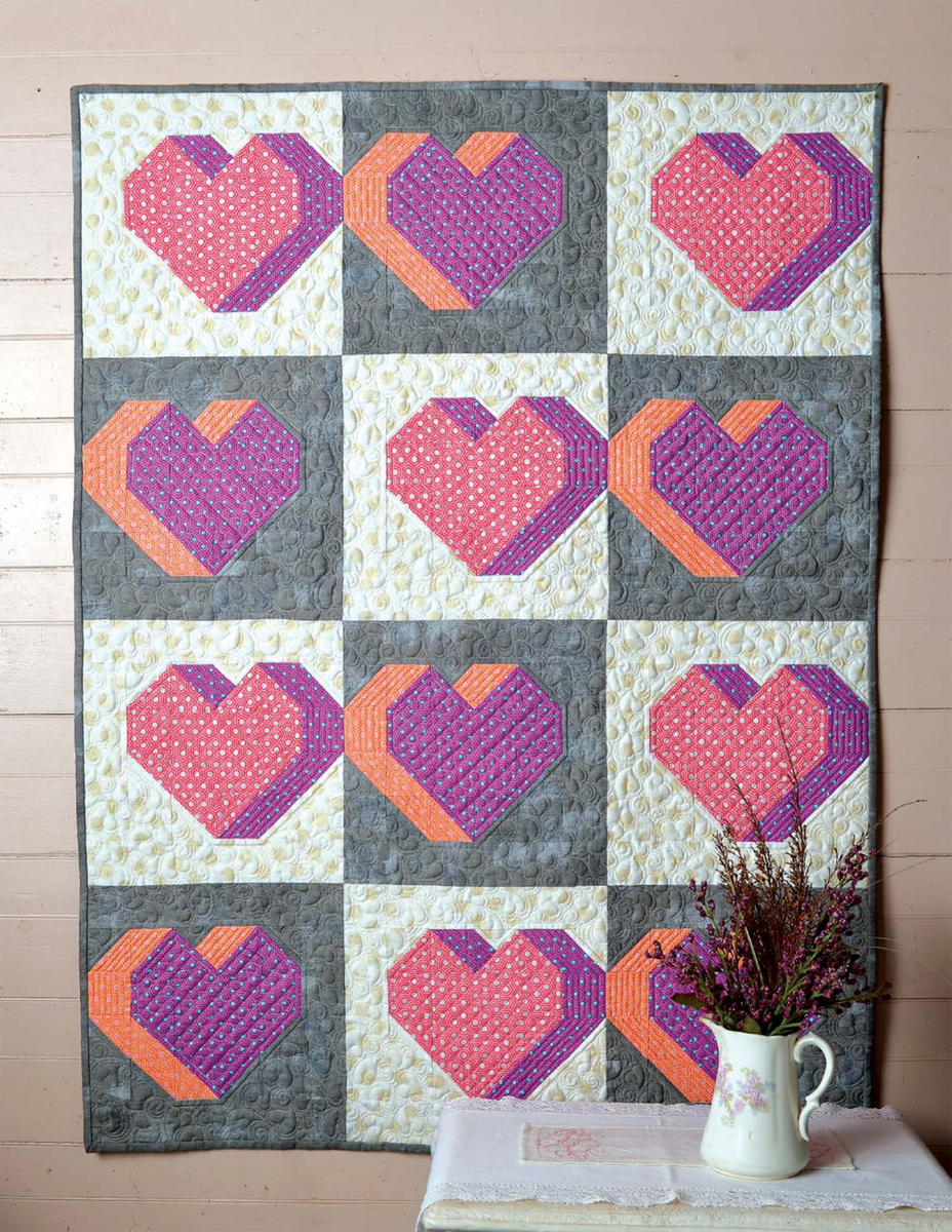 Все наши статьи о квиллинге здесь. Друзья, представьте: за окном холод и зима, а у вас дома теплая полянка сердец — розовых, фиолетовых, персиковых! Это лоскутное одеяло (или настенное панно) размером примерно 91 × 122 см, которое шьётся из простых блоков-сердечек. Оно идеально для детской кроватки, дивана или как подарок на День всех влюблённых, рождение малыша или просто потому что хочется тепла. Мы рекомендуем использовать хлопок для пэчворка, синтепон (обычный 100–150 г/м²), ткань для подкладки и окантовки. Все материалы рассчитаны для точного совпадения деталей. Указанные цифры гарантируют, что у вас хватит деталей для сборки всей дорожки. Техники создания квадратов в пэчворке см. здесь Готовый размер изделия: 91 × 122 см • Фиолетовый — 76 см по ширине ткани