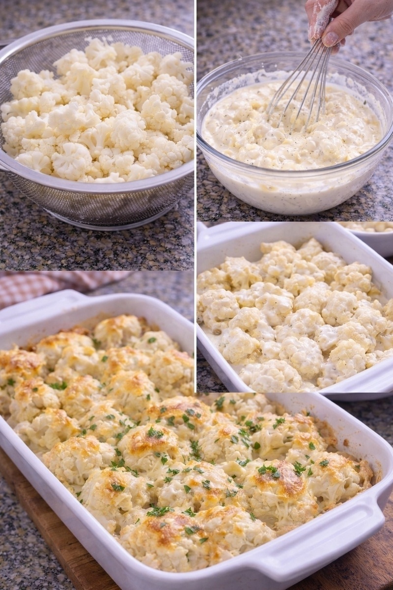 Цветная капуста, запечённая в чесночно-сметанном соусе