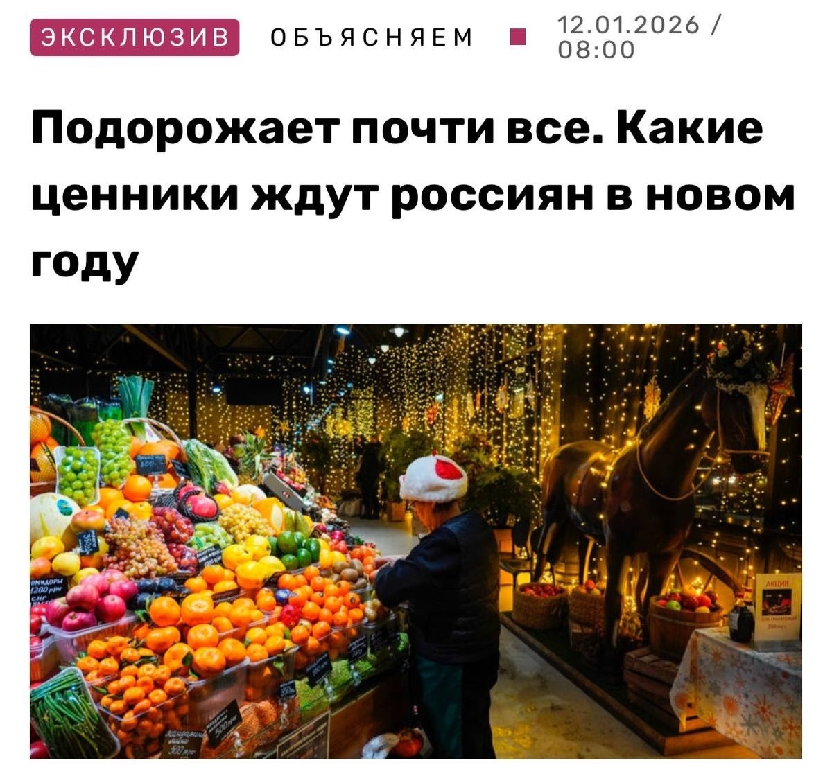 Цифры такие: 🔵Алкоголь — +10–17%. 🔵Айфоны и макбуки — от $70 за устройство. 🔵 Бытовая техника и электроника — +5–10%, сильнее всего в бюджетном сегменте. 🔵 Кофе — +25%, сигареты — +15–20 рублей за пачку. 🔵 Техосмотр с 1 января — +9,7% 🔵 Квартиры на вторичном рынке — до 12%. 🔵 Электроэнергия — +15,2%. 🔵 Связь — +5–10% у большинства операторов. 🔵 Абонементы в фитнес-клубы — +15%. Самое жёсткое — лечение зубов (взлетит в цене до 50%) и автомобили. Новые авто прибавят в стоимости 10–20%, подержанные электрокары и гибриды — 15–20%, а бензиновые авто с пробегом — 5%. 😋 Готовимся к удару по кошельку ____ 📢 Подписывайся 👉 Канал | Аварийка LIVE | ДТП и ЧП России 💬 Общайся 👉 Чат | Обсуждения и новости ДТП