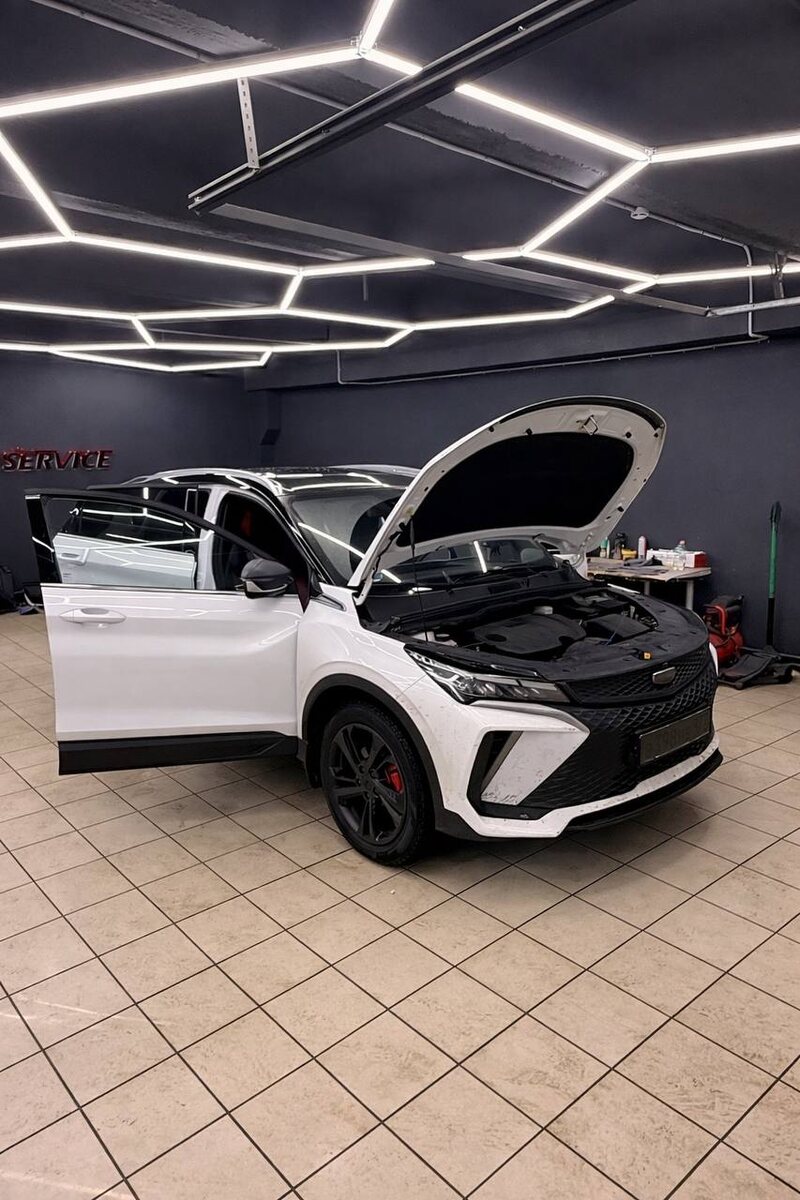 Шумоизоляция дверей Geely Coolray и замена штатной акустики на компоненты Helix Basic — это самый простой и рабочий способ навести порядок со звуком и лишним шумом без радикальной разборки автомобиля. В стоке двери у Coolray тонкие, шумные, а динамики играют вяло. После правильной шумки и установки Helix машина по ощущению становится на класс выше. Сначала убрали главную проблему — лишний шум и дребезг. По дверям сделали полный цикл: Двери стали тяжелее, закрываются глухо, без звона, а музыка перестала «вываливаться» на улицу. Штатная акустика Coolray — это компромисс «чтобы было». Helix Basic — уже нормальный продукт, с которым звук начинает играть по правилам. Что даёт Helix Basic в Geely Coolray: Динамики установлены на проставки и закреплены без колхоза, с нормальным прижимом к двери. Никаких саморезов «куда придётся» и болтающихся карт. Чтобы система не «дохла» на громкости, поставили 4-канальный усилитель Helix AMPLIFY 204 X-OVER. Он решает сразу несколько задач: Подключение вып