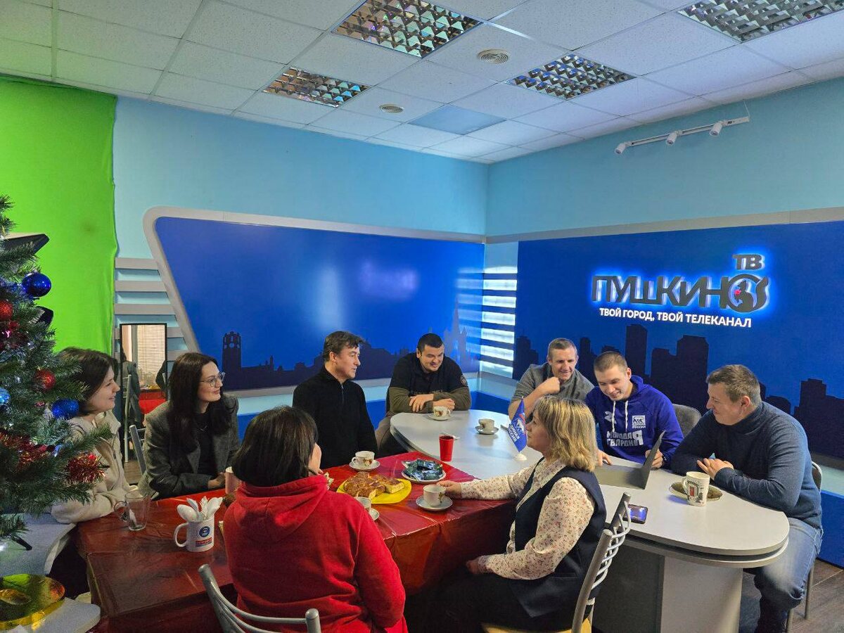Леонид Соболев и члены отделения Светлана Козлова и Шах Мелиев, а также руководитель пушкинского отделения «Молодой Гвардии» Максим Ядыкин и руководитель общественной организации «Творческие многодетные семьи Пушкинского г.о.» Екатерина Неженцева. ✨Повод приятный - поздравили коллектив телеканала с профессиональным праздником работников периодической печати, средств массовой информации и журналистов. 13 января отмечается День российской печати. Гостям мы показали свою студию и рассказали, как работаем. Общение проходило в неформальной обстановке за чашкой чая. Благодарим за визит и поздравления. 📱Подпишись, чтобы быть в курсе Пушкино ТВ | Новости в MAX