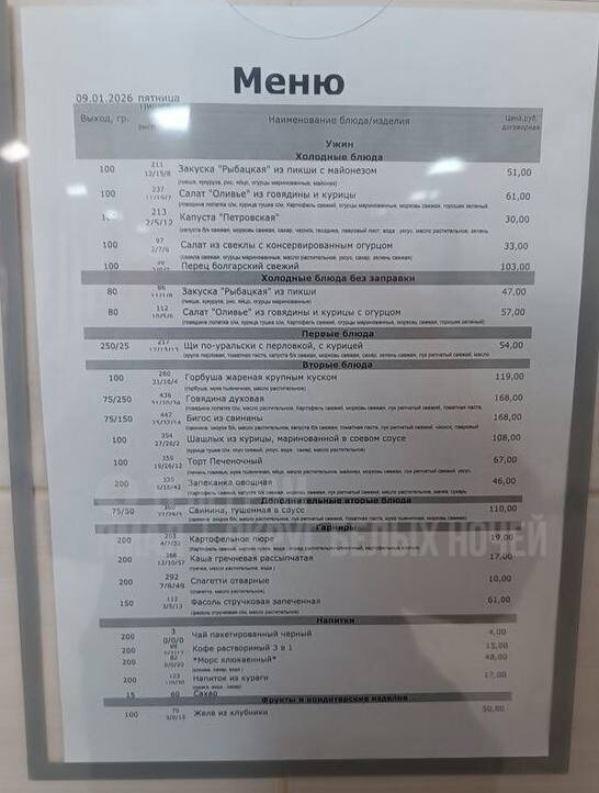 В соцсетях появилось меню столовой одной из вахтовых поселков на полуострове Гыдан. «Ревизор», опубликовавший прайс, отметил, что кормят вкусно, а цены демократичны. Единственное замечание — щи слишком жидкие, а в чеке была случайная замена мяса на бигос без изменения стоимости (так даже лучше). Согласно меню, салат «Оливье» стоит 61 рубль, овощная нарезка — 33 рубля, а щи — 54 рубля. Из вторых блюд выделяется тушеная свинина за 110 рублей, а на гарнир можно взять пюрешку за 19 рублей. Чек за полноценный обед редко превышает 250 рублей. автор, конечно, шиканул на 444 рубля 📸: ВК / «Подслушано на Ямале» Подписаться | Прислать новость | Мы в MAX