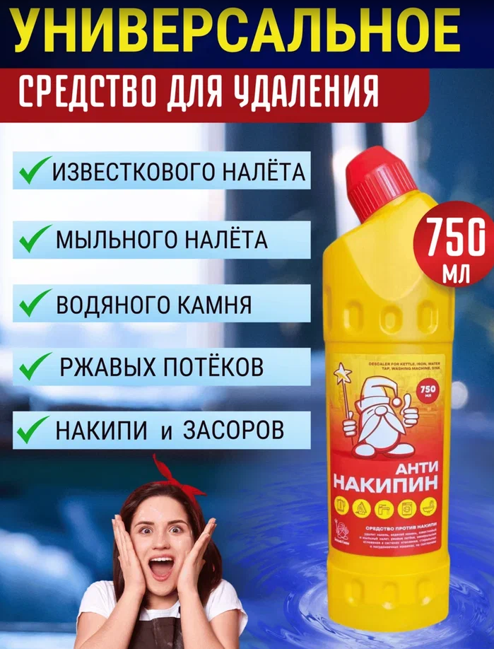 Больше не нужно хранить на полке целый арсенал. Один флакон обеспечивает комплексную защиту вашего дома от последствий жёсткой воды. Он не только очищает, но и помогает предотвратить образование новой накипи, бережно ухаживая за внутренними деталями. Не ждите, пока чайник начнёт шуметь, а стиральная машина выйдет из строя! «АнтиНакипин» — специализированный