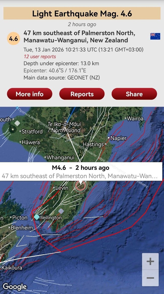 Сильных землетрясений пока не было, но вероятность М6+ в северной части Новой Зеландии сохраняется