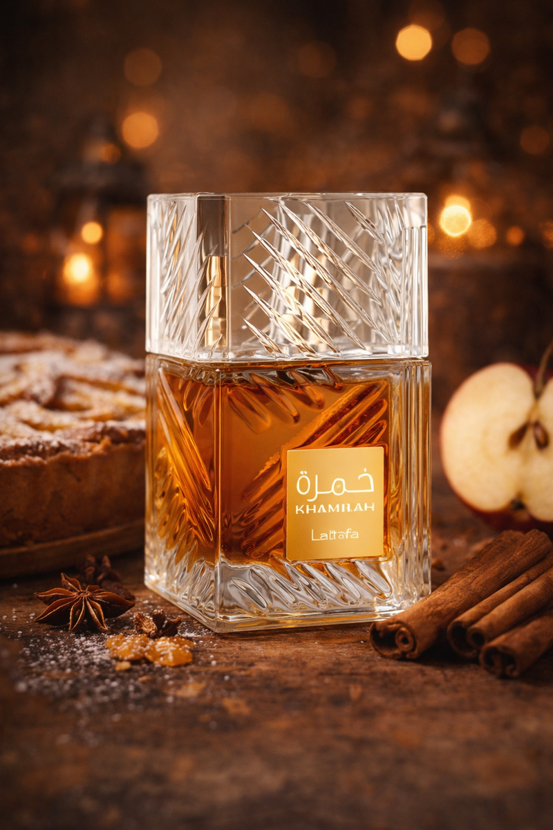 Это действительно сладкий аромат. Очень сладкий. Но вот что важно — эта сладость не удушающая, а тёплая, уютная и… правильная. Для меня Khamrah звучит как яблочная шарлотка, как тёплый домашний пирог.
