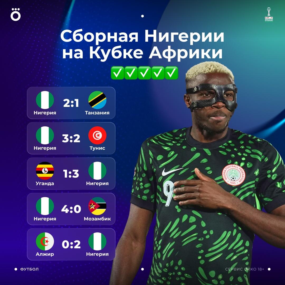 Нигерия идет без осечек на Кубке Африки. Пять побед в пяти матчах ✅✅✅✅✅