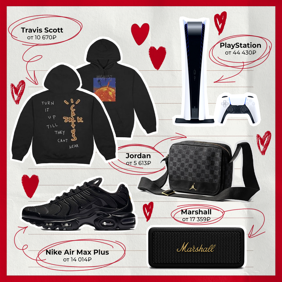 Девчата, он все равно скажет, что ему ничего не надо, поэтому мы уже собрали подборку. Базовые подарки, которые, наверняка, его порадуют. Nike Air Max Plus, цена от 14 014₽* Travis Scott, цена от 10 670₽* Marshall, цена от 17 359₽* PlayStation, цена от 44 430₽* Jordan, цена от 5 613₽* *стоимость может изменяться в зависимости от курса и размера Больше интересного на нашем сайте POIZON