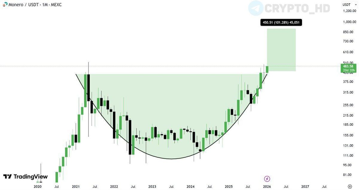 ☕️ Энтузиасты в Twitter уже несколько дней шиллят версию с отработкой классической фигуры ТА «чашка с ручкой» на Monero (с целью в $850-900). Crypto Headlines