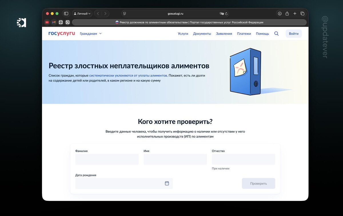 🤑 Публичный реестр неплательщиков алиментов заработал на «Госуслугах