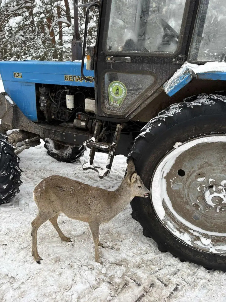 Необычный случай произошел около поселка Крапивка под Бобруйском. Работники лесничества, которые расчищали дорогу после сильного снегопада, заметили, как из леса к ним вышла дикая косуля. Животное, которое обычно избегает людей, не испугалось и спокойно подошло к лесникам. Как рассказывает местное издание kirovsk.by, косуля была голодной — ее покормили хлебом, после чего она даже забралась в кабину трактора, чтобы согреться. Лесники обогрели животное, а затем выпустили его обратно в лес. Теперь фото косули в тракторе — прямо-таки готовый шаблон для мемов. Впрочем, даже одной надписи «Беларус» уже хватает, чтобы дружно выдохнуть: «Ну чисто мы этой зимой». Есть о чем рассказать? Пишите в наш телеграм-бот. Это анонимно и быстро