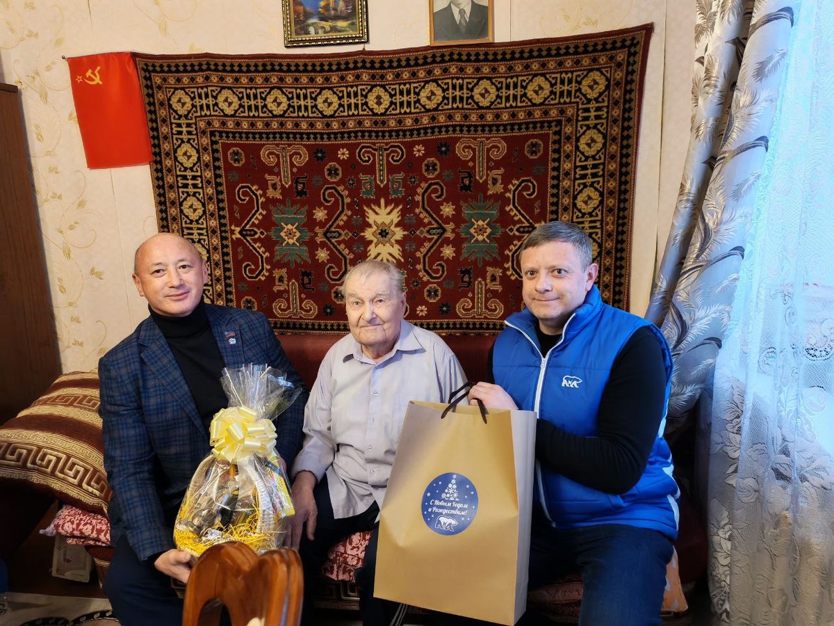 Встреча с фронтовиком прошла в рамках акции «С Новым годом, ветеран» В Мурманске участника Великой Отечественной войны, Почетного гражданина города-героя Окунева Алексея Иосифовича навестили депутат горсовета Сергей Тян и исполнительный секретарь местного отделения ЕР Алексей Ковалев. Они вручили подарки и поздравили семью фронтовика с новогодними праздниками. Алексей Иосифович родился в 1929 году в Кировской области в семье крестьян. В 14 лет был мобилизован. Из Кировска затем переведен в Мурманск, где трудился на оборону Заполярья на заводе и в траловом флоте. «Мы ловили рыбу и при необходимости перевозили грузы, десант в Мотовский залив, где находилась военная часть, забирали оттуда раненых», – вспоминает Алексей Иосифович. В конце 1944 года Алексея Окунева списали с корабля как несовершеннолетнего. Он отучился в фабрично-заводской школе и поступил на работу на судоремонтный завод в Мурманске. Окончив мореходное училище, работал на Териберском рыбзаводе, помощником капитана в упр