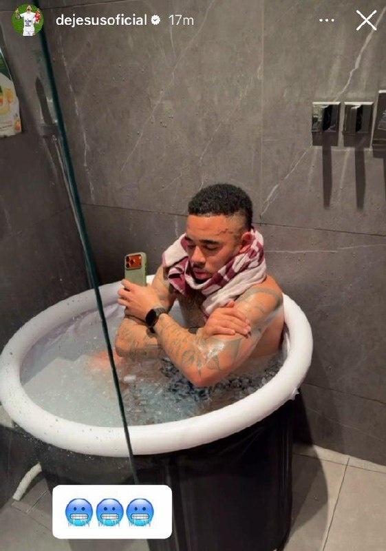 Нападающий "Арсенала" Габриэль Жезус восстанавливается в ледяной ванне после матча с "Портсмутом" 🧊