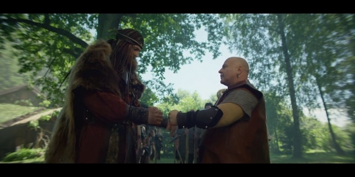 А тут справа у сына главы деревни трикверт на шее висит. Знак кельтской тематики. Дааа какая разница конечно тем кто костюмы собирал, кто в этом разбирается.