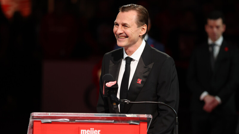 Интересные события в рамках матча регулярного чемпионата НХЛ между «Детройт Ред Уингз» и «Каролиной Харрикейнз» (4:3 ОТ) начались задолго до стартового вбрасывания. «Детройт» официально вывел из обращения 91-й номер, под которым выступал российский форвард Сергей Фёдоров — олицетворение целой эпохи для клуба. Церемония получилась трогательной и домашней, а героя дня переполняли эмоции. Фёдоров появился на льду неожиданным способом — выехал на пассажирском сиденье кабриолета Chevrolet Corvette C4. Именно на таком автомобиле он ездил в годы своей игры за «Ред Уингз». Для Детройта, который ценит память о девяностых, этот жест оказался точным попаданием. На трибунах — семья Фёдорова. На льду — нынешний состав команды. На разминку хоккеисты вышли в форме с номером 91. Даже за пределами арены город жил этим моментом: о церемонии напомнили на большом табло стадиона бейсбольного клуба «Детройт Тайгерс». Фёдоров провел в НХЛ 18 сезонов и 13 из них — в Детройте. Это не просто самый длинный отрез