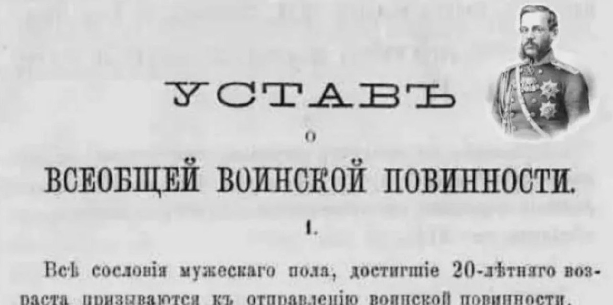 13 января 1874 года Александр II утвердил "Устав о воинской повинности", положивший конец рекрутской системе и введший всесословную воинскую