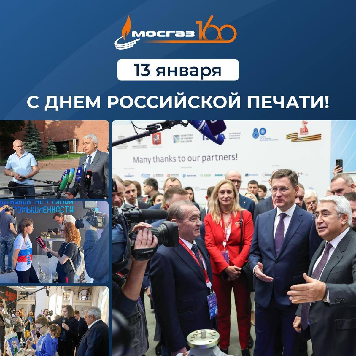 ! Более трех веков назад 13 января 1703 года вышел первый номер отечественной печатной газеты, основанной по указу Петра Великого. Именно к этой дате приурочен профессиональный праздник работников средств массовой информации в нашей стране. Сегодня отечественные СМИ формируют русскоязычное информационное пространство, оперативно и объективно освещают ключевые события в России и в мире. Коллектив МОСГАЗа от всей души благодарит журналистов за нашу многолетнюю совместную просветительскую работу. Благодаря вашим материалам миллионы читателей и зрителей узнают о правилах газовой безопасности в быту, учатся отличать сотрудников газовой службы от мошенников, знакомятся с новыми технологиями в энергетической отрасли. Желаем всем работникам СМИ неиссякаемого вдохновения, интересных сюжетов, признания и уважения аудитории ❤️ @aomosgaz
