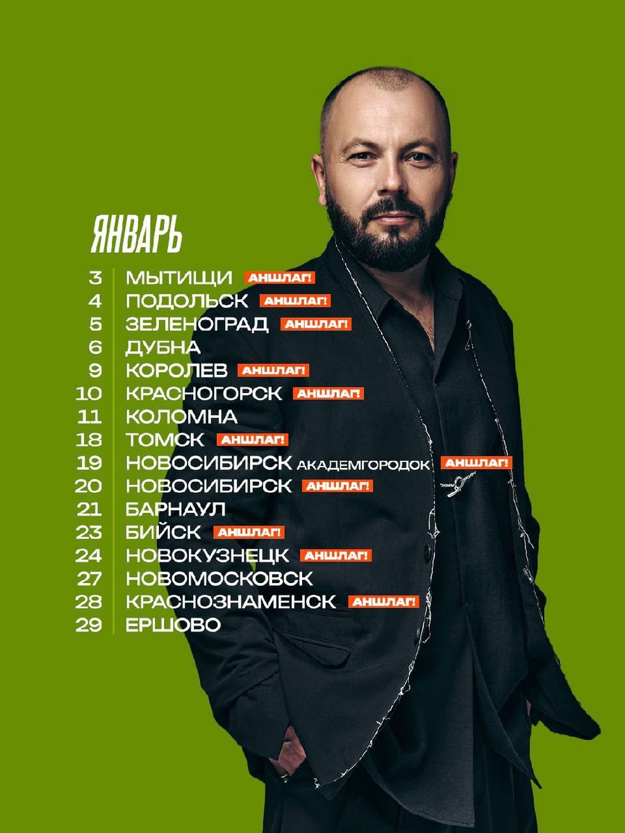 И самым лучшим новогодним подарком для меня стали аншлаги почти во всех городах текущего тура🔥 Спасибо вам за такой старт года, друзья! За то, что приходите на концерты, находите время и желание быть вместе с нами в зале. Это действительно очень ценно. 🔔 Напоминаю вам мой январский график. Во многих городах уже аншлаги, но в некоторых билеты ещё есть. Поэтому, если ваш город есть в списке, и вы планировали прийти, лучше не медлить с покупкой. Буду рад увидеть вас на концерте! Совсем скоро вновь отправлюсь работать, петь и встречаться с любимой публикой. До скорых встреч! Спасибо, что вы рядом🙏