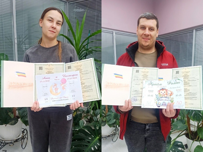 Город Шахты начинает год с прекрасных новостей – 5 января были зарегистрированы первые двойни. У Екатерины Скоробогатовой 19 декабря 2025 года родились две дочери — Анна и Виктория. В семье Натальи и Евгения Левченко 25 декабря 2025 года появились на свет мальчишки — Артём и Роман. Для обеих семей эти малыши стали первым и вторым ребёнком соответственно. Для родителей это одновременно радость и ответственность — стать родителями впервые и сразу для двоих крох. Молодые родители оценили современный комфорт. В ЗАГСе не было никаких очередей и лишней суеты. Документы родители малышей оформили через сервис Госуслуг «Рождение ребёнка», а свидетельства о рождении получили в отделе ЗАГС в удобное время. Сотрудники отдела ЗАГС поздравляем семьи с этим двойным подарком судьбы и пожелали малышам крепкого здоровья, а родителям — сил и побольше спокойных ночей.