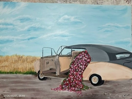 🥰 Юная и невероятно талантливая художница Ульяна так радовалась результату, что буквально прыгала от счастья — и мы её отлично понимаем 💛 Цветы и старинный автомобиль получились по-настоящему шедевральными: с настроением, характером и душой. Мы гордимся тем, что рождаются такие тёплые истории и поддерживаются юные таланты ✨ Совсем скоро эта работа украсит домик «Сойва» в нашем глэмпинге — обязательно посмотрите её вживую. В Pera мы ценим ручную работу, творчество и искреннюю радость, с которой они создаются 🤍 _______________ #pera92_важно