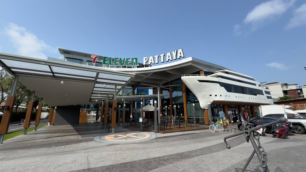 Кто бывал в Таиланде хотя бы 1 раз, не мог пройти мимо 7-eleven. С этими магазинчиками жизнь на курортах гораздо проще! Здесь можно купить абсолютно любые товары первой необходимости: продукты, средства гигиены, косметику, напитки, лекарства и многое другое. Очень удобно, что на кассе можно разогреть купленную тут же еду. А еще - выпить вкусный зерновой кофе всего за 35 бат. Работают эти чудо-магазины 24/7. В Паттайе магазины расположены на расстоянии 500 метров друг от друга и, где бы вы не остановились, рядом обязательно будет 7-eleven. Этот 2-х этажный магазин с огромным ассортиментом расположен в Паттайе, снаружи он имеет форму яхты и оформлен в морской тематике. ▪️Это 10000-ый 7-Eleven в Таиланде и открыт он был в 2019-ом году. Сейчас в стране уже насчитывается более 14,5 тыс. магазинов 7-Eleven; ▪️Площадь магазина 1700 кв.м, 2 этажа; ▪️На втором этаже находится полноценное кафе и туалет; ▪️По магазину вдоль стены двигается робот, который приветствует посетителей; ▪️В магаз