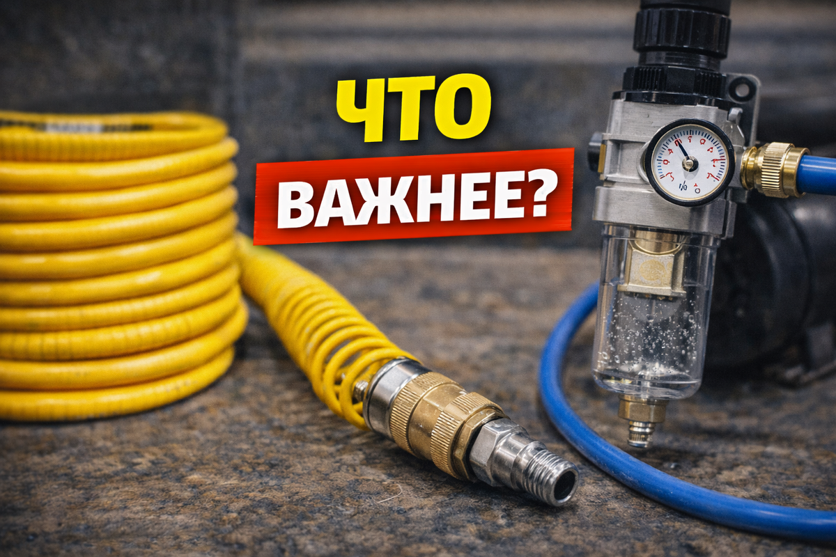 Компрессор купили, пистолет/гайковёрт взяли, а дальше начинается магия: краскопульт то дует, то плюётся, гайковёрт крутит “на обиженке”, а из пневмолинии летит водичка — прям как из чайника. И человек делает вывод: “компрессор слабый”. А виноваты часто не “лошади”, а мелочь: шланг, быстросьём и влагоотделитель.