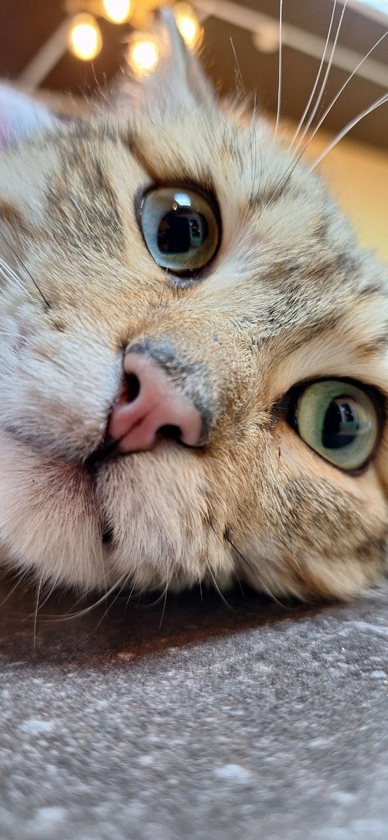 Он вообще довольно спокойный котяра. Вальяжный и ленивый. Лежать ему нравится. На руках сидеть. Мурчит и с рук уходить не желает.Еще кот очень любит есть. Аппетит хороший, как не глянешь: у него мордаха в миске. Совершенно не интересуется кошачьими игрушками.