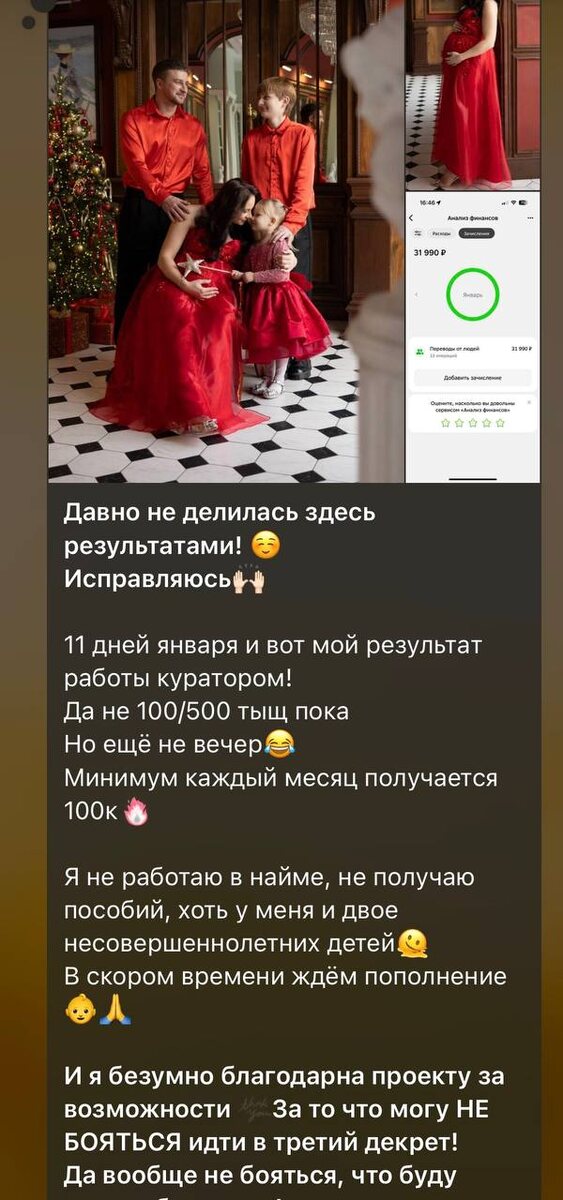 ! 🤱✨ Ульяна доказала это на своем примере, поделившись результатами всего за 10 дней января. Её ситуация знакома многим: двое детей, нет официальной зарплаты и пособий, а впереди — третий декрет. Но вместо тревоги Ульяна выбрала действие и начала зарабатывать на продаже доступа в наш проект. С нами можно: 🔹 Зарабатывать на товарах из Китая. 🔹 Стать селлером на маркетплейсах. 🔹 Получить новую востребованную профессию. Зарабатывать может каждая. Главное — начать! 🚀 Узнать подробности: @Markel_son