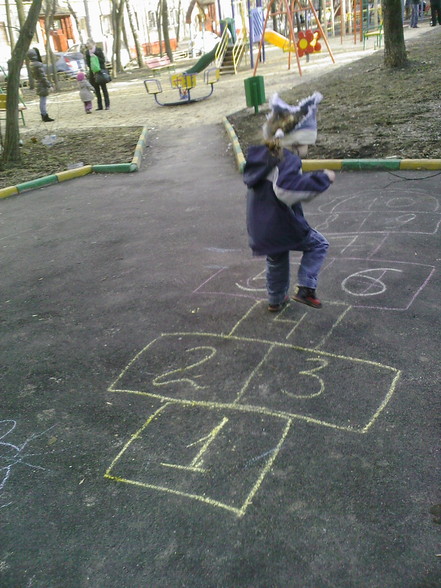 - Любые простые упражнения (наклоны, приседания, прыжки, переступания с ноги на ногу) повторять, самостоятельно отсчитывая от 2 до 10 раз. Очень полезная штука - игра в классики.
