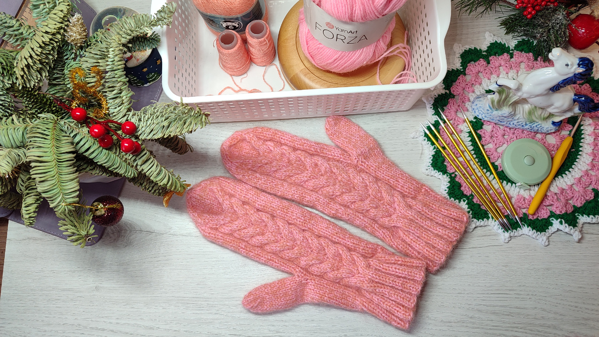 Январь в самом разгаре, и с наступлением морозов становится особенно важно позаботиться о своем комфорте и здоровье. Одним из ключевых элементов зимней экипировки являются варежки. Эти простые, но эффективные аксессуары защищают руки от холода, ветра и снега, обеспечивая тепло и удобство в холодное время года. Варежки обладают несколькими важными преимуществами перед перчатками: Современные варежки изготавливаются из различных материалов, каждый из которых имеет свои особенности и преимущества: В своей работе использовала две виды пряжи: «Ярнарт» розового цвета и пух норки «Колор М33» и две дополнительные нити, которые идут вместе с пухом норки. Цвет изделия получился потрясающим Варежки не только функциональны, но и могут стать стильным аксессуаром. Современные модели предлагают широкий выбор дизайнов, от классических однотонных варежек до ярких и оригинальных вариантов с принтами и декоративными элементами. В данном изделии использованы три узора: резинка, лицевая гладь и коса на вер
