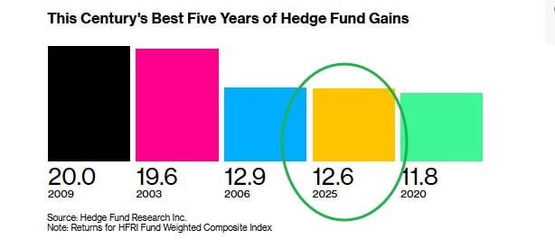 👔 США 2025: ХЕДЖ-ФОНДЫ ЗАРАБОТАЛИ ВТОРОЙ ЛУЧШИЙ РЕЗУЛЬТАТ ЗА 16 ЛЕТ