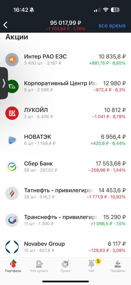 День #267 💰 Всех приветствую! Потихонечку все входим в рабочий режим, ведь сегодня официально второй трудовой день. В этом году как-то особенно лениво начинать работать, но куда деваться 😅 Пополнил свой счет на 450 руб., и со вчерашними остатками купил 2 акции Сбербанка 🏦 ниже 300х рублей, что меня более чем устраивает. Честно говоря, Сбербанк ниже трехсот рублей выглядит как беспроигрышная сделка, ведь летом ожидаются дивиденды в размере ~38 рублей, а в 2027 уже можно расчитывать на ~40 руб., ведь прибыль продолжает расти. Сейчас тенденция на снижение ключевой ставки, а к 2027 году она может вернуться к адекватным значениям, поэтому покупка Сбера как по мне - отличное вложение Пока индекс МосБиржи топчется на одном месте, с небольшим снижением - портфель застыл на отметке 94-95 тыс., даже с учетом пополнений, но лично меня это никак не расстраивает, скорее наоборот, ведь можно купить больше за меньшие деньги. Жду январские дивиденды, в первую очередь от Х5 🍏 , Лукойла ⛽️ и немно
