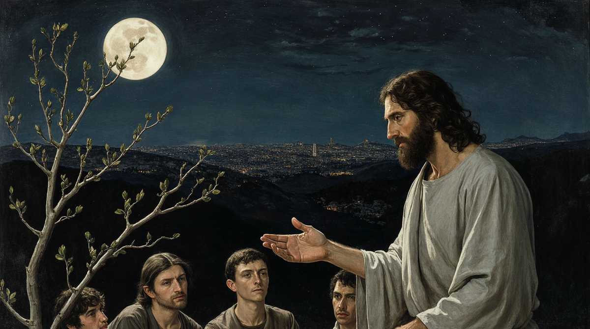 После грандиозных картин космических потрясений и явления в славе Иисус обратил взгляд учеников к простому, знакомому образу. «От смоковницы возьмите подобие». Он указал на мирную растительность склона. Когда ветви смоковницы становятся мягкими и выпускают листья, ясно — лето близко. Так и они, увидев все описанные Им знамения (обман, войны, гонения, мерзость запустения, великую скорбь), должны понять: конец, Его пришествие, при дверях. «Истинно говорю вам: не прейдёт род сей, как всё это будет». Речь о поколении, которое станет свидетелем всего цикла пророчеств, особенно его финала. Но тут следует самый важный поворот: