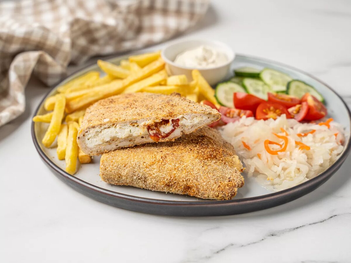 Этот рецепт предлагает необычную и полезную интерпретацию классического чебурека. Вместо традиционного теста используется сочный пласт из куриного фарша, что делает блюдо богатым белком и менее калорийным. Нежная начинка из творожного сыра, томатов черри и ароматных специй, запеченная до золотистой корочки, обещает стать вкусным и сытным открытием для вашего стола. Для чебурека Для подачи (по желанию) Шаг 1: Подготовка Разморозьте куриный фарш, если это необходимо. Помидоры черри тщательно вымойте. Застелите противень силиконизированным пергаментом для запекания и разогрейте духовку до 180 °C. Шаг 2: Заправка фарша В глубокой миске смешайте куриный фарш с солью, молотым черным перцем и вашими любимыми специями для курицы. Массу необходимо хорошо вымешать до однородности. Шаг 3: Формирование основы Переложите заправленный фарш на подготовленный пергамент. Сформируйте из него ровный круглый пласт толщиной примерно 1.5 см, слегка утрамбовав руками. Шаг 4: Добавление начинки На одну поло