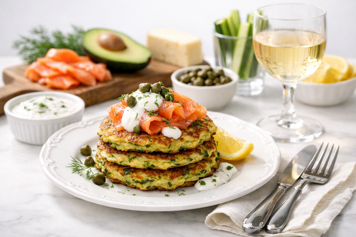 Нежные оладьи из кабачка, сочный лосось и легкий йогуртовый соус. Этот рецепт выглядит как из ресторана, а готовится за 20 минут. Подходит для правильного питания, завтрака или легкого ужина без чувства тяжести.