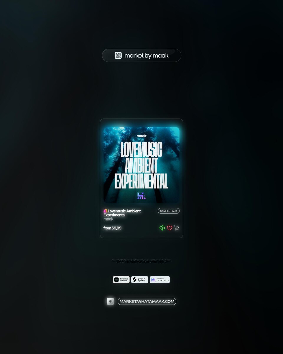 » Lovemusic Ambient Experimental — это больше, чем просто жанр. Это свежий взгляд на сам звук. Соединяя ломанные драм-паттерны, погружающие атмосферы и неожиданные стерео-бас-линии, этот стиль создаёт эмоционально насыщенный и прогрессивный саунд, который сейчас активно набирает популярность на мировой сцене. Этот звук основан на слиянии эмбиент-текстур и экспериментальных ритмических структур и формируется под влиянием таких артистов, как Angelo Jackson, 6astardcanrise, clvr, redda, ashura kai, hurtc1ub, monkayo, pietsbeats и wextor. Он уходит корнями в направления lovemusic и ambient experimental, объединяя уникальные 808 басы, детализированную перкуссию и выразительные FX, чтобы создать по-настоящему отличительный саунд. Доступно в Splice. 📁 В комплект входят 370 файлов: • 100+ Drum Loops • 100+ Melody Loops • 15 Unique Sound Sets • High-Quality 24-bit 44.1 kHz WAV audio 🎹 Splice • 🍊 FL Cloud • 🎹 WAVS 🎹 LANDR • 🥁 Tracklib • 🚉 Traktrain 🛒 Получить 🔍 Другие продукты ℹ️