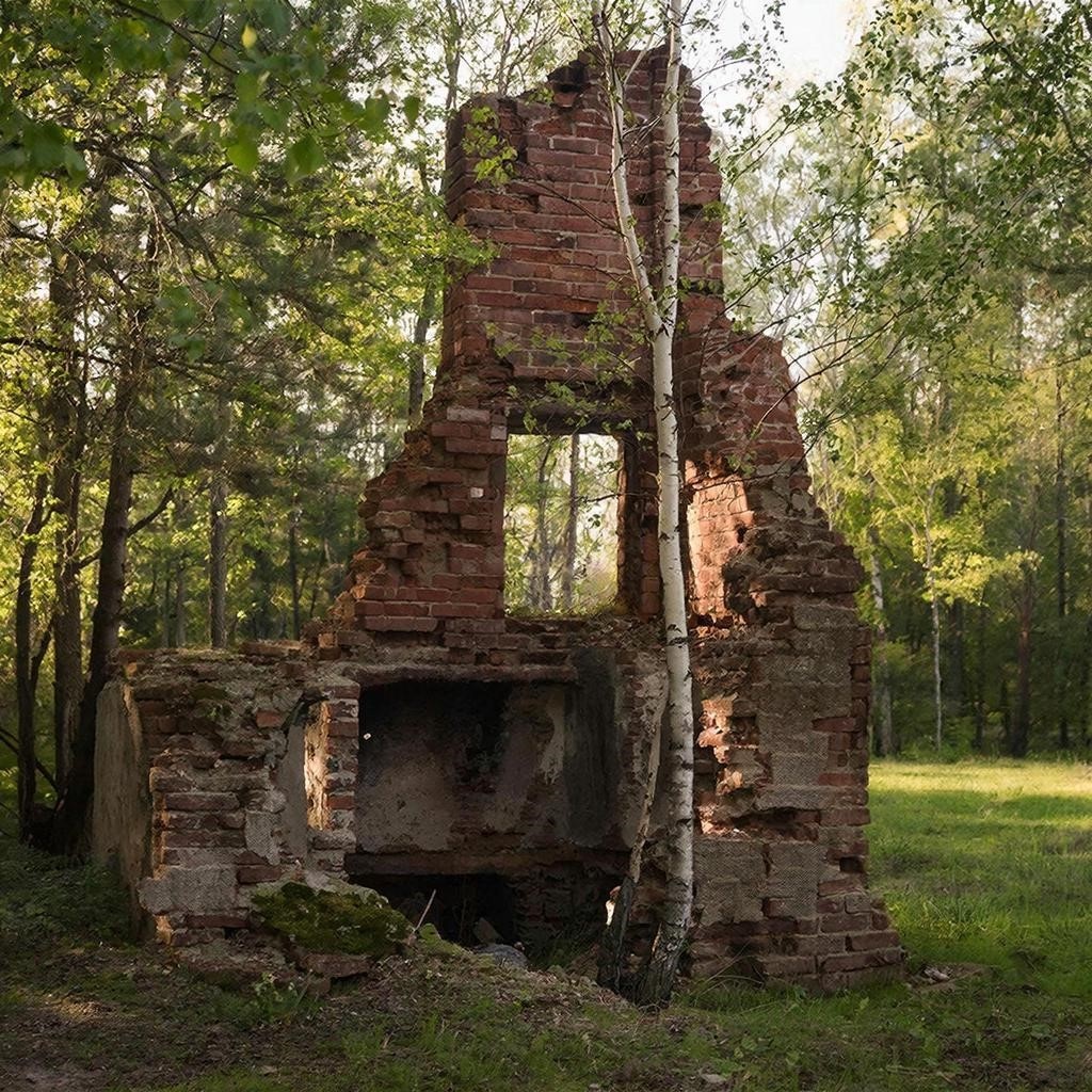 Вскоре вышел на ту поляну. А дома и нету. Только печь стоит, разваленная, и берёзка сквозь кладку проросла.