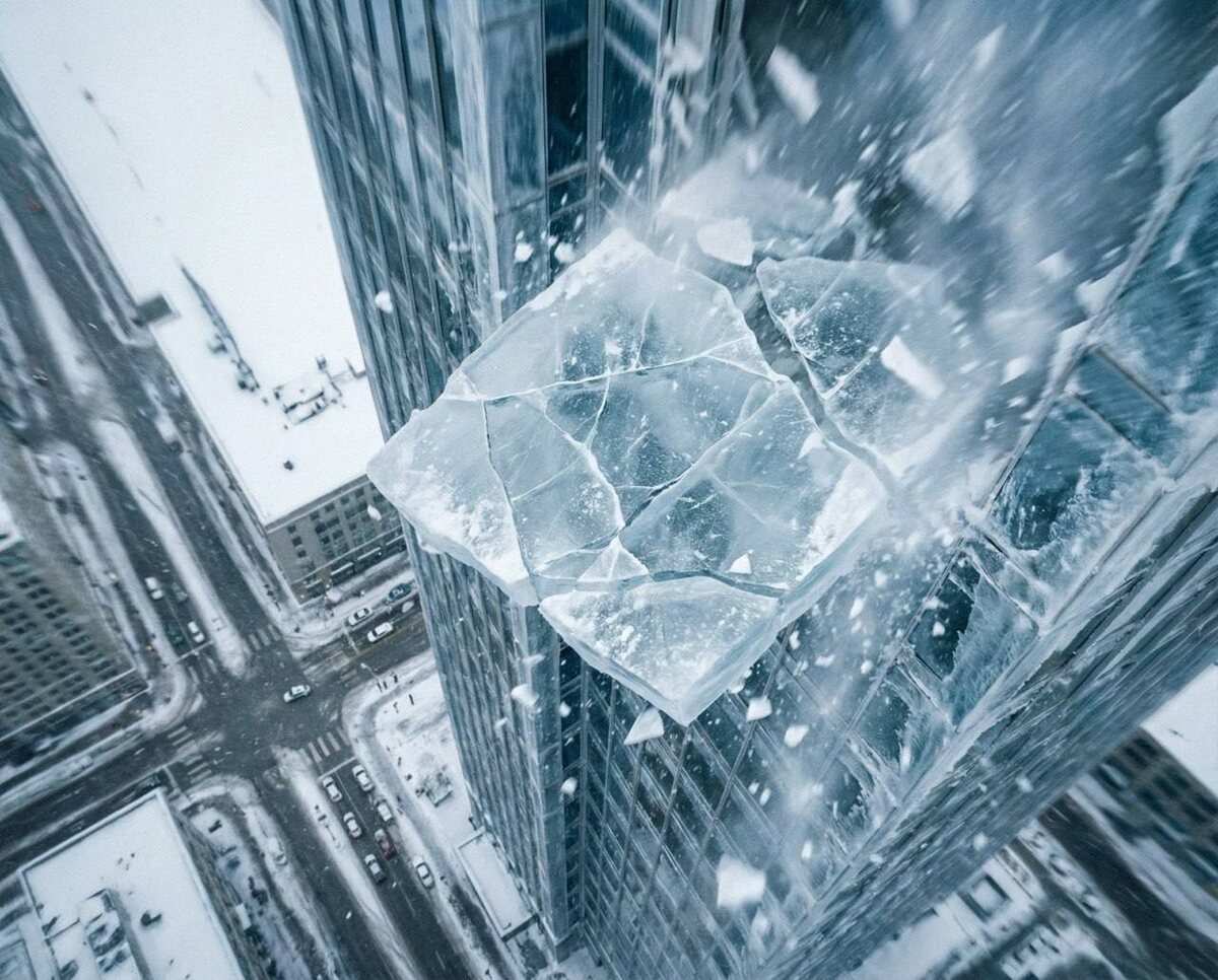 В деловом центре «Москва-Сити» сегодня произошло чрезвычайное происшествие — массивная льдина пробила стеклянное покрытие башни «Федерация». Причина инцидента связана с последствиями мощного циклона «Фрэнсис», обрушившегося на столицу с обильными снегопадами. По данным очевидцев и оперативных служб, ледяная глыба откололась от высотного здания «Запад» и преодолела расстояние около 120 метров, прежде чем врезаться в остекление соседней башни. Масштаб повреждений включает частичное разрушение остекления на одном из уровней небоскреба. На месте происшествия зафиксированы обломки закаленного стекла и фрагменты льда в вестибюле здания. К счастью, обошлось без пострадавших. По информации с места событий, в момент падения льдины неподалеку находился человек, которому удалось избежать травм благодаря удачному стечению обстоятельств — ледяная глыба рухнула в нескольких сантиметрах от него. ❄️ Напомним, что недавний снегопад, прошедший 9 января, стал одним из самых мощных за последние 146 л