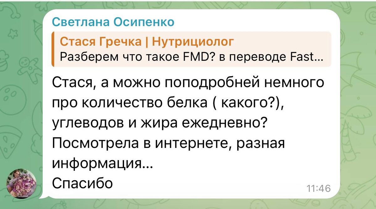 👆 - это имитировать голодание, не включая выраженный катаболизм мышц и запуская аутофагию. Я использую в своей работе как нутрициолог и как нутришеф классическую схему, применяемая в клинических протоколах (Longo / ProLon). 🧬 Соотношение КБЖУ на FMD (5 дней) День 1 (вход в протокол) 🔹 Калорийность: ≈ 1000–1100 ккал Соотношение: Белки: ~10% Жиры: ~55–56% Углеводы: ~34–35% 📌 Цель дня: мягкий вход, снижение IGF-1, подготовка метаболизма. Дни 2–5 🔹 Калорийность: ≈ 700–800 ккал / день Соотношение: Белки: 8–9% Жиры: 44–46% Углеводы: 45–48% 📌 Ключевой принцип: крайне низкий белок → снижение mTOR умеренные углеводы → питание мозга высокие жиры → кетогеноподобное состояние без полного голода 📊 Сводная таблица по кбжу см. в фото 👆 ⚠️ ВАЖНО: Животный белок строго ограничен → даже «полезный» белок снижает эффект FMD Источники белка - растительные; минимальные жиры - преимущественно оливковое масло, орехи, авокадо; Углеводы - овощи, немного цельных круп, без сахара. Протокол НЕ