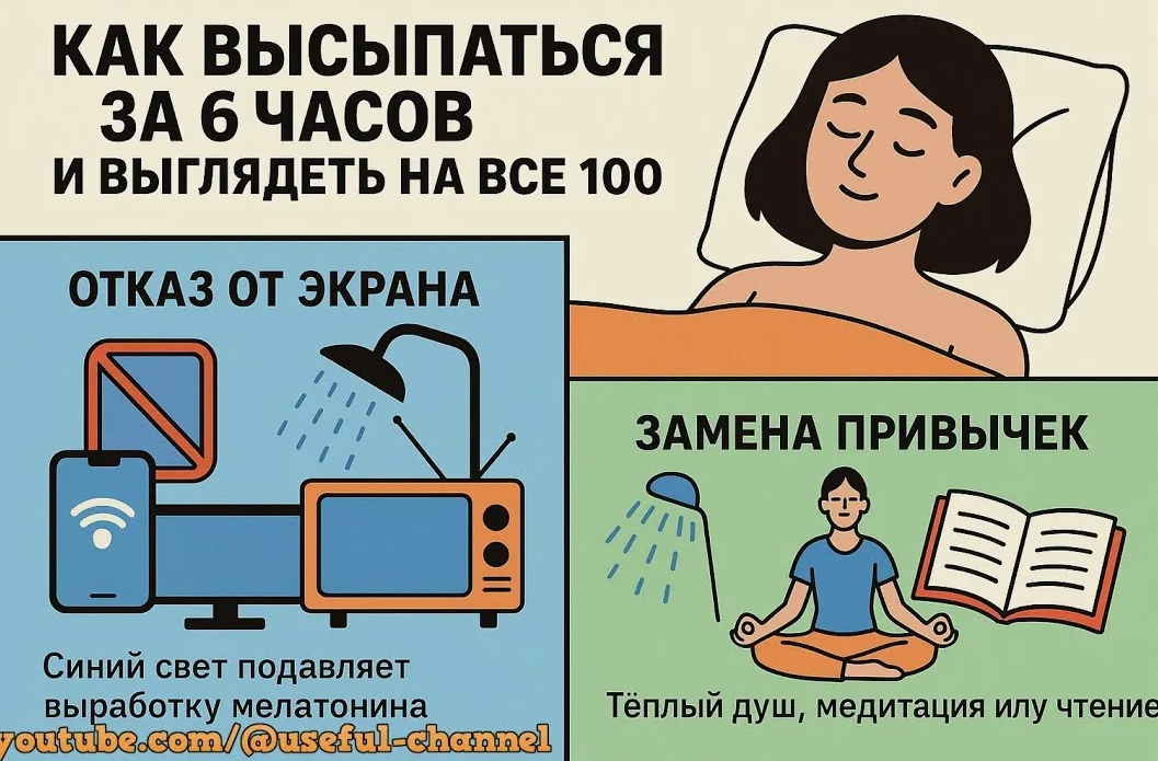 Синий свет от экранов подавляет выработку мелатонина — гормона, регулирующего сон. Постарайтесь отключить гаджеты минимум за час до отдыха.