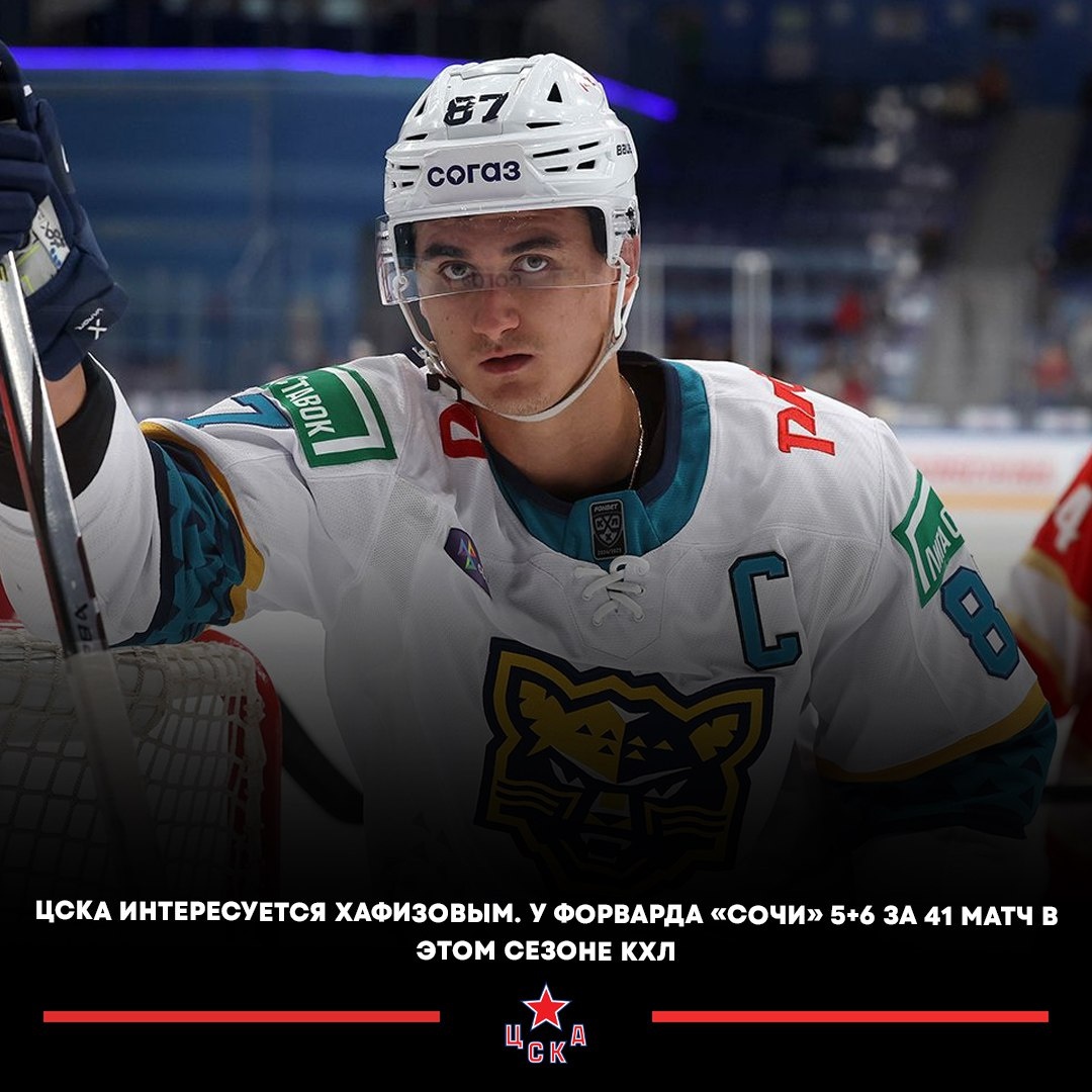 🚨 27-летний форвард проводит четвертый сезон в составе сочинского клуба. В текущем чемпионате КХЛ на его счету 11 (5+6) очков за 41 матч при полезности «минус 2». 📊 По ходу карьеры Хафизов также выступал за «Нефтехимик» и «Спартак». Он провел в лиге 301 матч с учетом плей-офф и набрал 82 (44+38) очка.