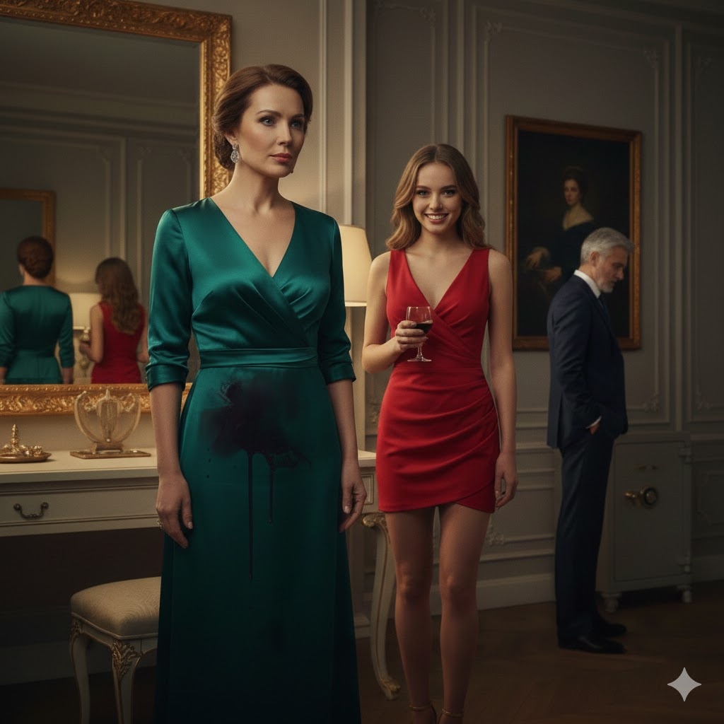 В этот момент всё произошло как в замедленной съемке. Кристина «споткнулась». Её рука с бокалом дернулась, и густой, липкий вишневый сок веером разлетелся по моему изумрудному платью. Пятно мгновенно расползлось по нежному шелку, превращая шедевр портновского искусства в грязную тряпку.