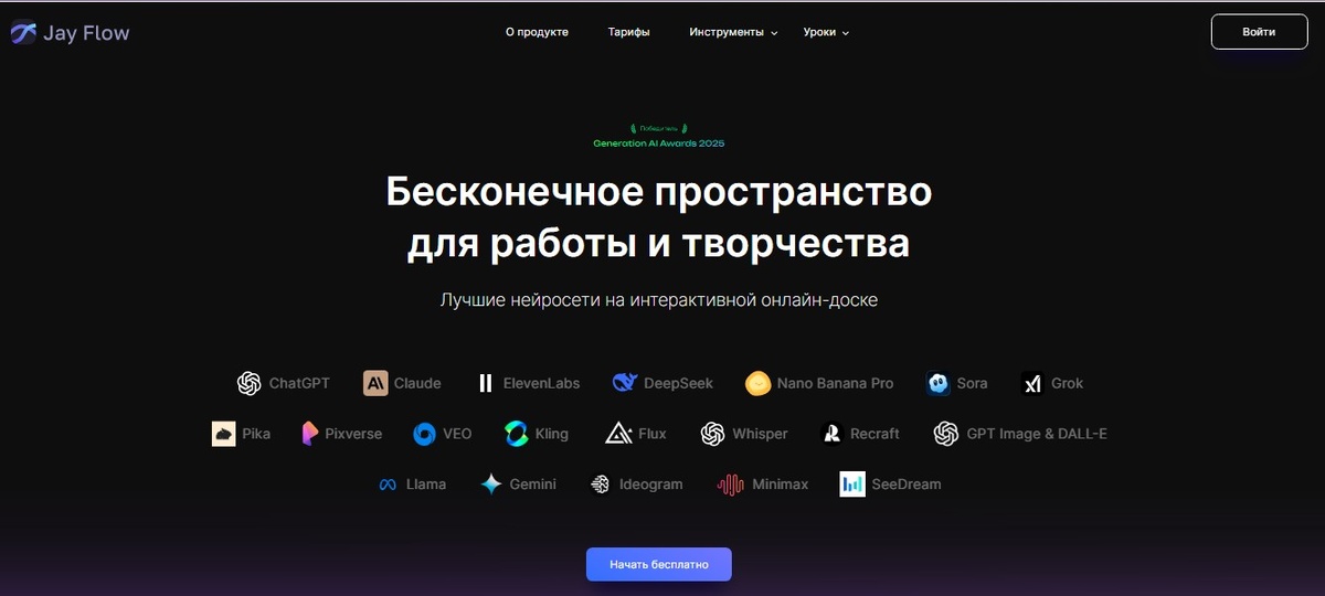 Jay Flow на текущий момент является одним из самых функциональных решений для работы с искусственным интеллектом на российском рынке. Платформа успешно устраняет барьер между разрозненными инструментами, предлагая профессионалам мощную экосистему в рамках одного окна.