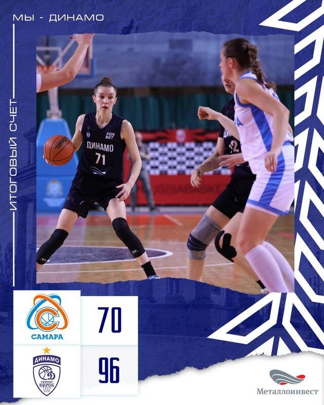 13 января баскетболистки «Динамо» (Курск) провели гостевую встречу с БК «Самара» в женской премьер-лиге. Гостьи обыграли волжанок с крупным счетом 70:96 (15:26, 16:25, 15:14, 24:31) Получив весомое преимущество над хозяйками в первых двух периодах — 25:16 и 51:31 к большому перерыву, девушки из Курска лишь в третьей четверти позволили соперницам играть с собой на равных. Итоговый перевес «Динамо» составил «плюс 26». После стартовой «перестрелки» гостьи ушли в отрыв на 5 очков. Затем был курский рывок 13:0. Первую четверть выиграли курянки – 26:15. Во втором периоде бело-голубые продолжили наращивать преимущество. При этом Сергей Вознюк задействовал практически всю скамейку. 51:31 на «экваторе» практически сняли вопрос о победителе. Третью четверть «открыла» Ольга Фролкина броском из-за дуги. Вероника Сазонова решила не отставать, добавив к своей «трешке» два точных штрафных. Хозяйки набирали очки в позиционных атаках и с минимальным перевесом выиграли период — 65:46 Курск вел после пол