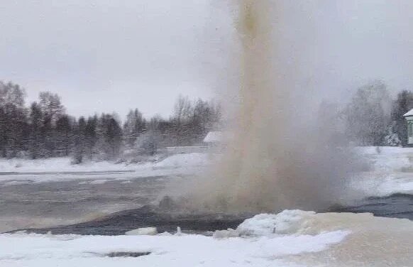 Спасатели взорвали лед на реке Нижний Выг, чтобы избежать подтоплений в Беломорске