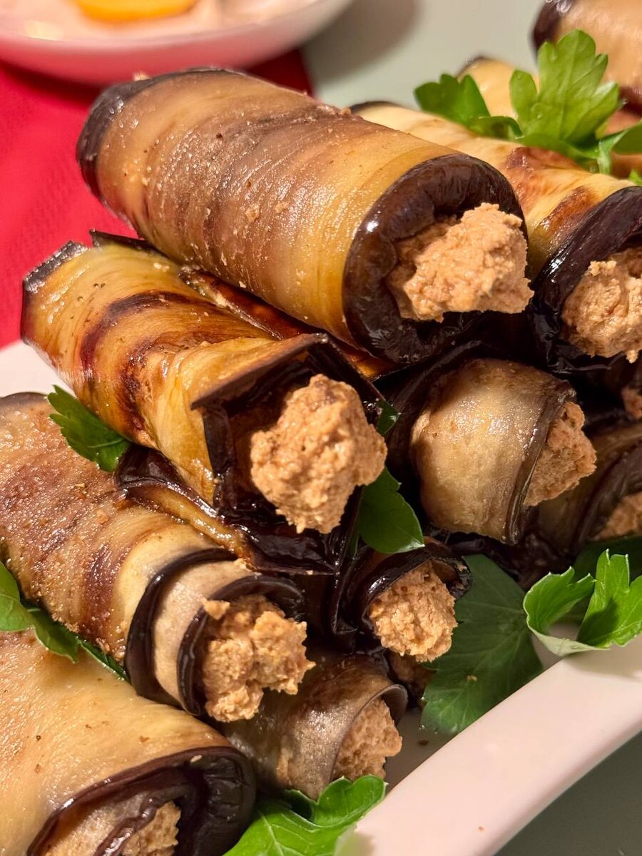 Рулетики из баклажанов с начинкой из сыра, грецких орехов и сушёных томатов