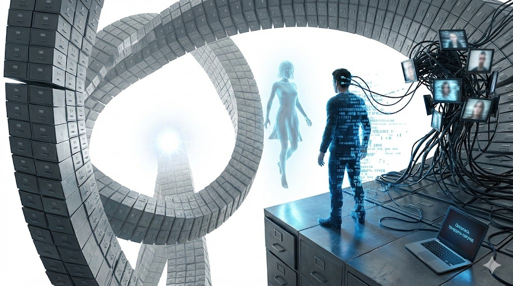 Я бросился к фигуре, но шкафы картотеки начали расти вверх, превращаясь в небоскребы. Юля оказалась на вершине одного из них. Я начал карабкаться. Мои пальцы проходили сквозь металл. С каждым метром я терял воспоминание. Я забыл вкус яблок. Стерлось воспоминание о первом школьном звонке. Это было ощущение, будто из души вырывают куски плоти. — Миша, остановись! Если ты поднимешься сюда, ты вспомнишь правду. Она убивает окончательно. Я не слушал. Взобравшись на вершину, я увидел Юлю на самом краю. И в этот момент я вспомнил. Аварию. Мокрый асфальт, ослепительный свет фар встречного грузовика, крик Юли. Удар. Холодная вода, заливающая салон. Я вспомнил, как Юля смотрела на меня, уходя под воду, и её глаза были полны прощения. — Я не доехал до Красного Яра, — прошептал я.