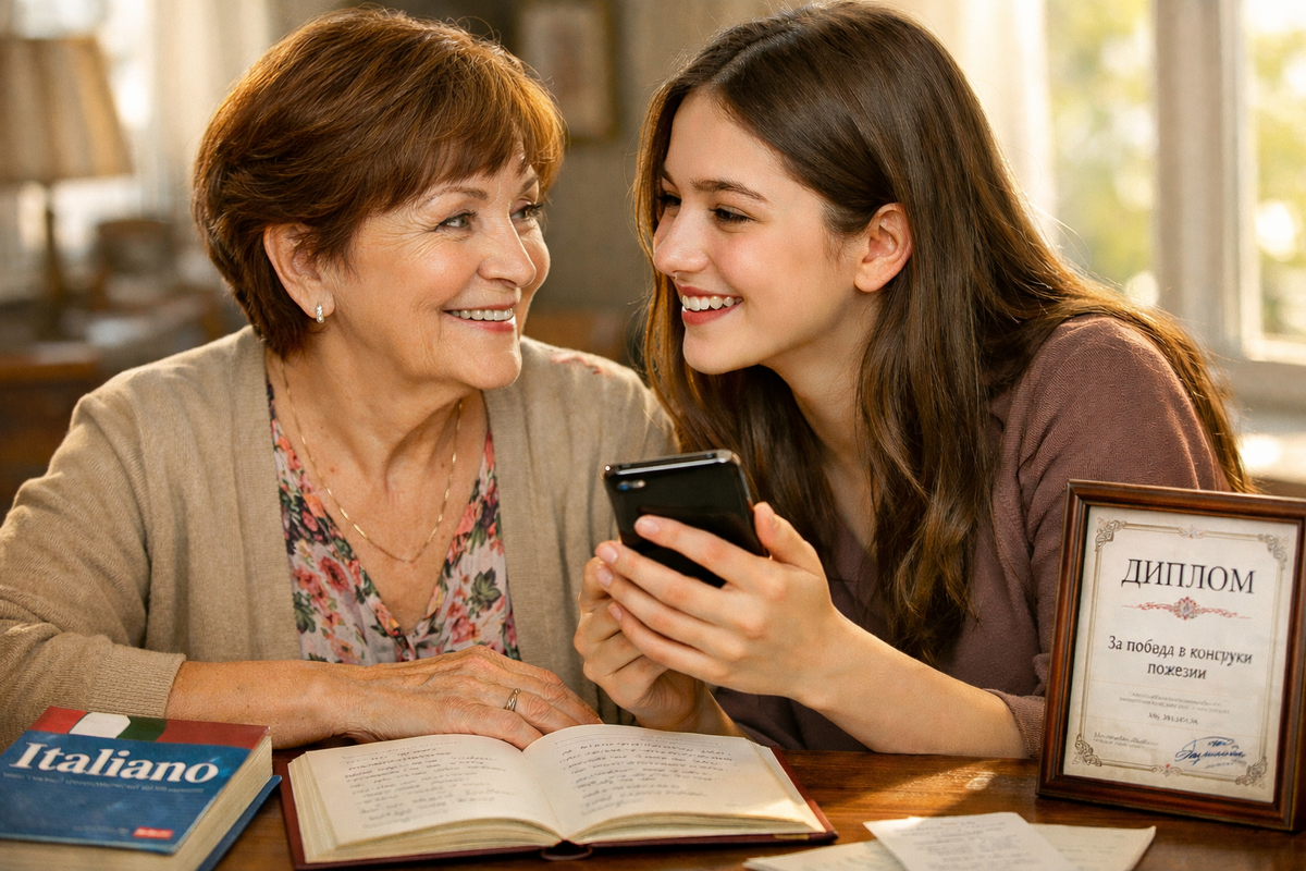 Дома в тот вечер я сидела за своим столом, перебирала тетради со стихами. Вспоминала, как когда-то боялась показать их кому-то, как стеснялась. А потом внучка отправила их на конкурс, и я победила. Вспоминала, как решилась выучить итальянский, хотя возраст был уже немолодой. И получилось.
