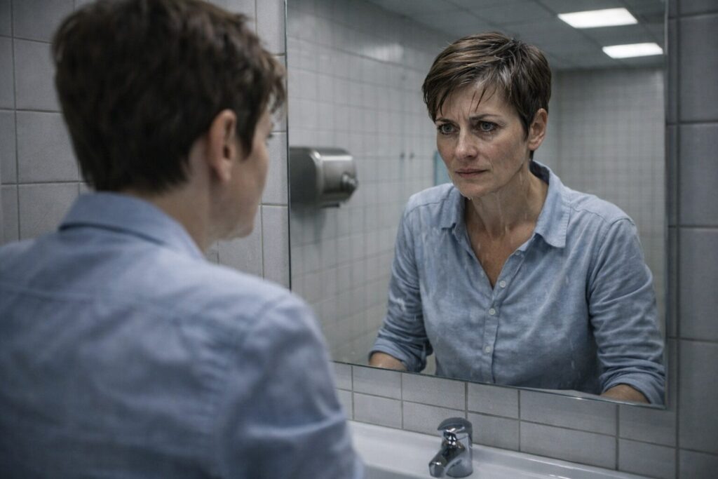 В зеркале отражалась немолодая женщина. Серое лицо, тёмные круги под глазами, морщины у рта. Волосы тусклые, кое-где седые — она уже месяц не красилась, не до того было. Глаза усталые, пустые.